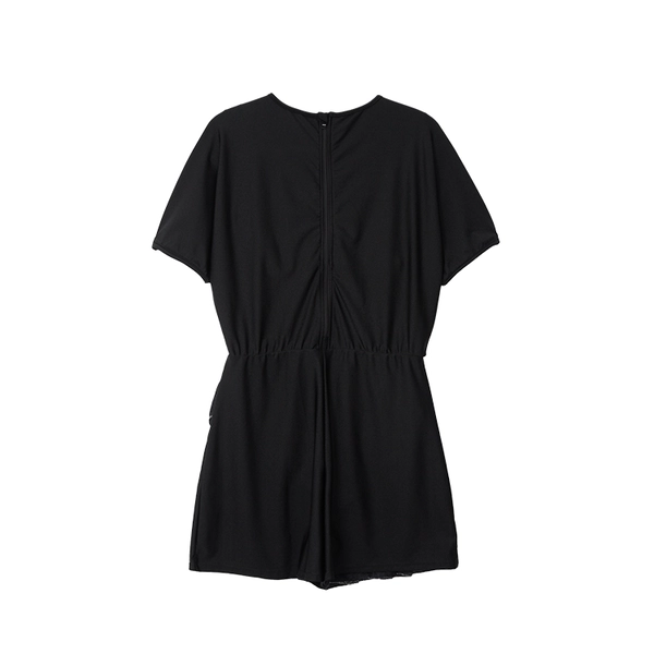 팔은 나그랑 소매로 팔라인이 자유롭고 어깨선부터 주름 잡혀 부유방과 팔뚝라인을 커버할 수 있습니다